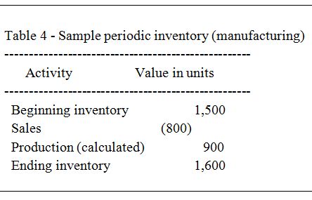 The periodic inventory starts with the physical inventory taken at the end of each period. Sales or production amounts are then calculated based on the beginning and ending physical inventories. This method is used when reliable sales or production data are not readily available. Consider the examples in Tables 3 and4.