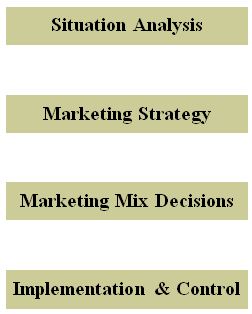Under the marketing concept, the firm must find a way to discover unfulfilled customer needs and bring to market products that satisfy those needs. The process of doing so can be modeled in a sequence of steps: the situation is analyzed to identify opportunities, the strategy is formulated for a value proposition, tactical decisions are made, the plan is implemented and the results are monitored.